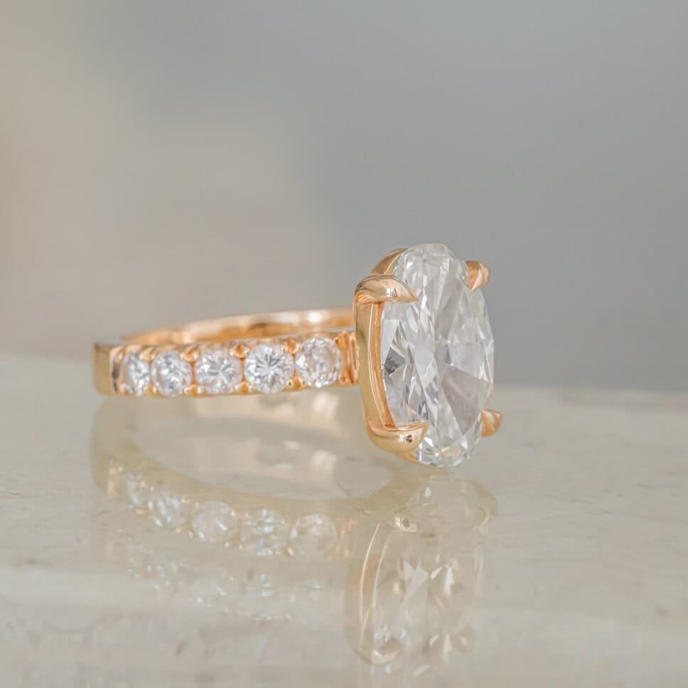 2ct Oval Diamond Engagement Ring with Claw Prongs and Melee stones. Bridal Set Gold