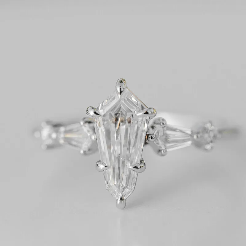 A refined setting. A rare kite-shaped diamond. A ring created to last — and to stand apart.